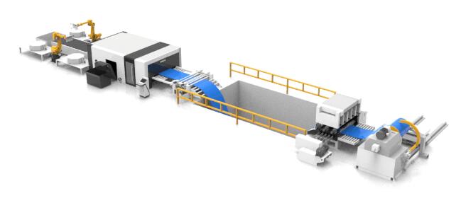 事實上,目前大多數的激光單機設備仍然主要依賴人工,特別是在工作臺上料、撿料,特別是激光切割的鋼材工件又大又重,體力勞動十分繁重,容易限制產品的交付周期。顯而易見,傳統的激光單機智能化已經無法滿足更高的產業需求,因此必須突破原來的局限,走自動化加工系統道路,徹底解放人的勞動。
